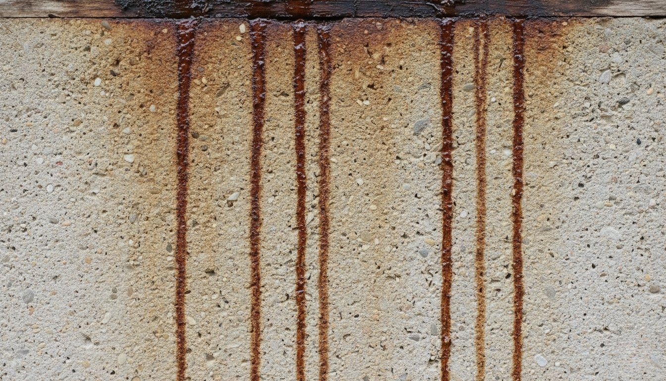 Sonuçları: Beton veya taş yüzeyde aşağıya doğru sızan akıntı lekeleri. Açık renkli doğal taşlarda temizlenmesi çok zor olan lekelenmeler.