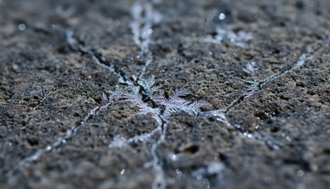 During the day, the pores of the expanding stone open, or rain/moisture enters through microcracks. At night, when the temperature drops below 0°C, the water in the cracks freezes. When water freezes, its volume increases by approximately 9%. The ice pushes the cracks from the inside out, exerting tremendous pressure, and the stone bursts.